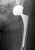 Patient had undergone a resurfacing arthroplasty due to bone collapse. Seven years later, patient was experiencing severe groin pain due to wear of the cartilage in the hip socket